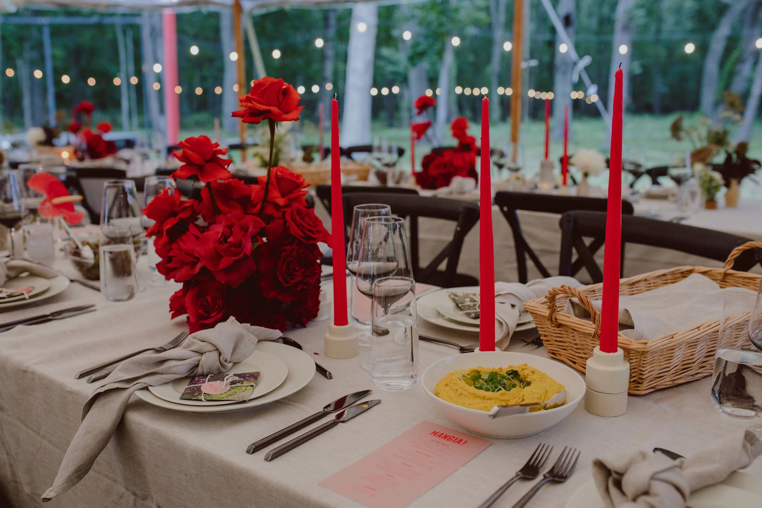 Tenting, dance floor, lighting, flooring, chairs, tables, linens, and tent permits